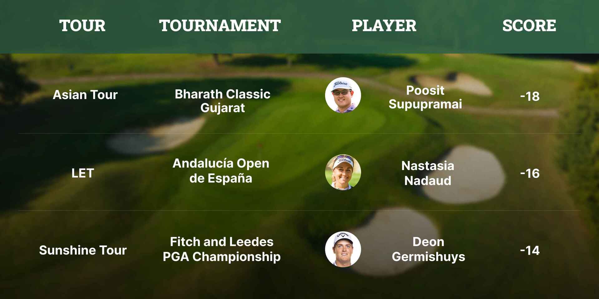 Asian Tour: Thailand’s Poosit Supupramai sank a stunning birdie on the par-4 18th for 18-under to win the inaugural Bharath Classic Gujarat. Korea’s Wooyoung Cho birdied the last two to narrow the gap. But not enough. Poosit nabbed his first Asian Tour title, a one-year exemption on the Tour, and introduced his wife and child to the world in this heartfelt video call.