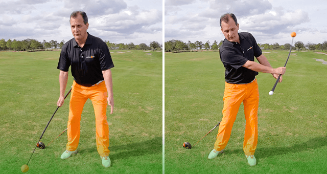 The swing action will mirror that of a tennis forehand and backhand. This will loosen up your upper body before you hit your first tee shot. But that’s not the only use of Orange Whip; we’ve listed other easy drills below.