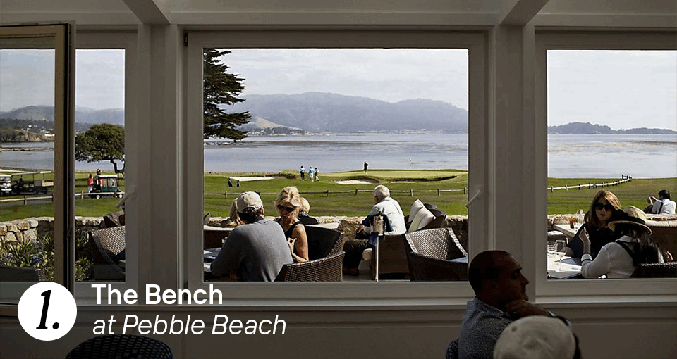 Pebble Beach Golf Links: The Bench pairs wood-fired dishes with a front-row seat to the 18th green. Here’s a glimpse of the view.