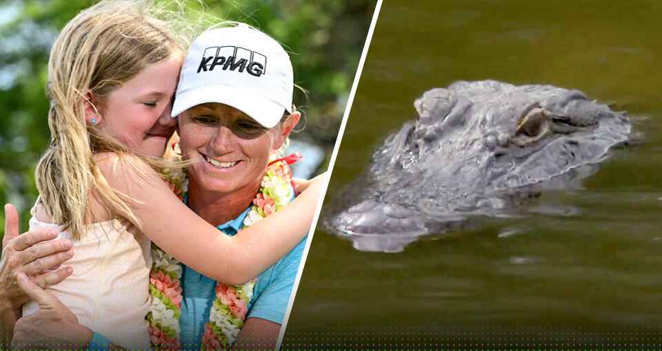 Dangerous audience: On the 11th hole, Vince Whaley’s drive went rogue, landing 260 yards away in a perilous spot. His second shot splashed into the water right of the green. Undeterred, he rolled up his pants and went for it, only to come face-to-face with an alligator. Yes, an actual apex predator. You won’t believe how close it got: