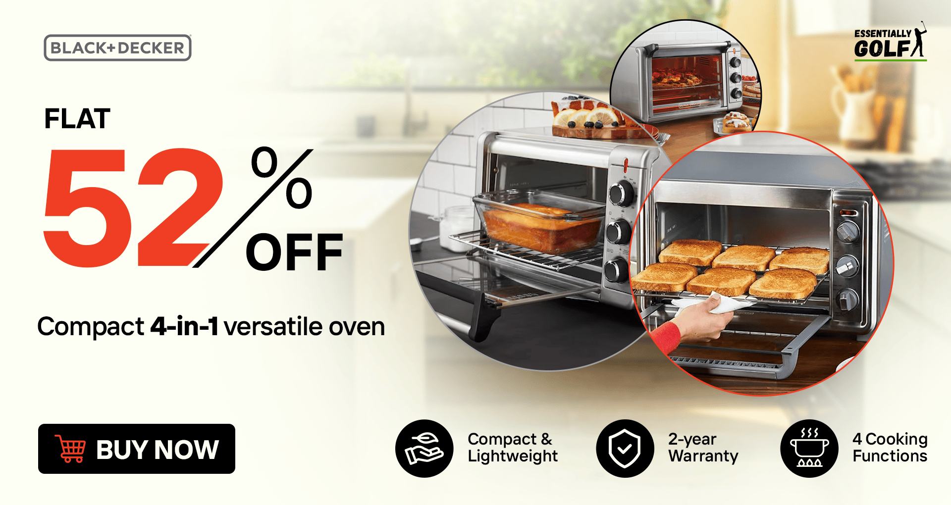 4-in-1Versatility – Toast, bake, broil, and keep food warm, all in one compact appliance.