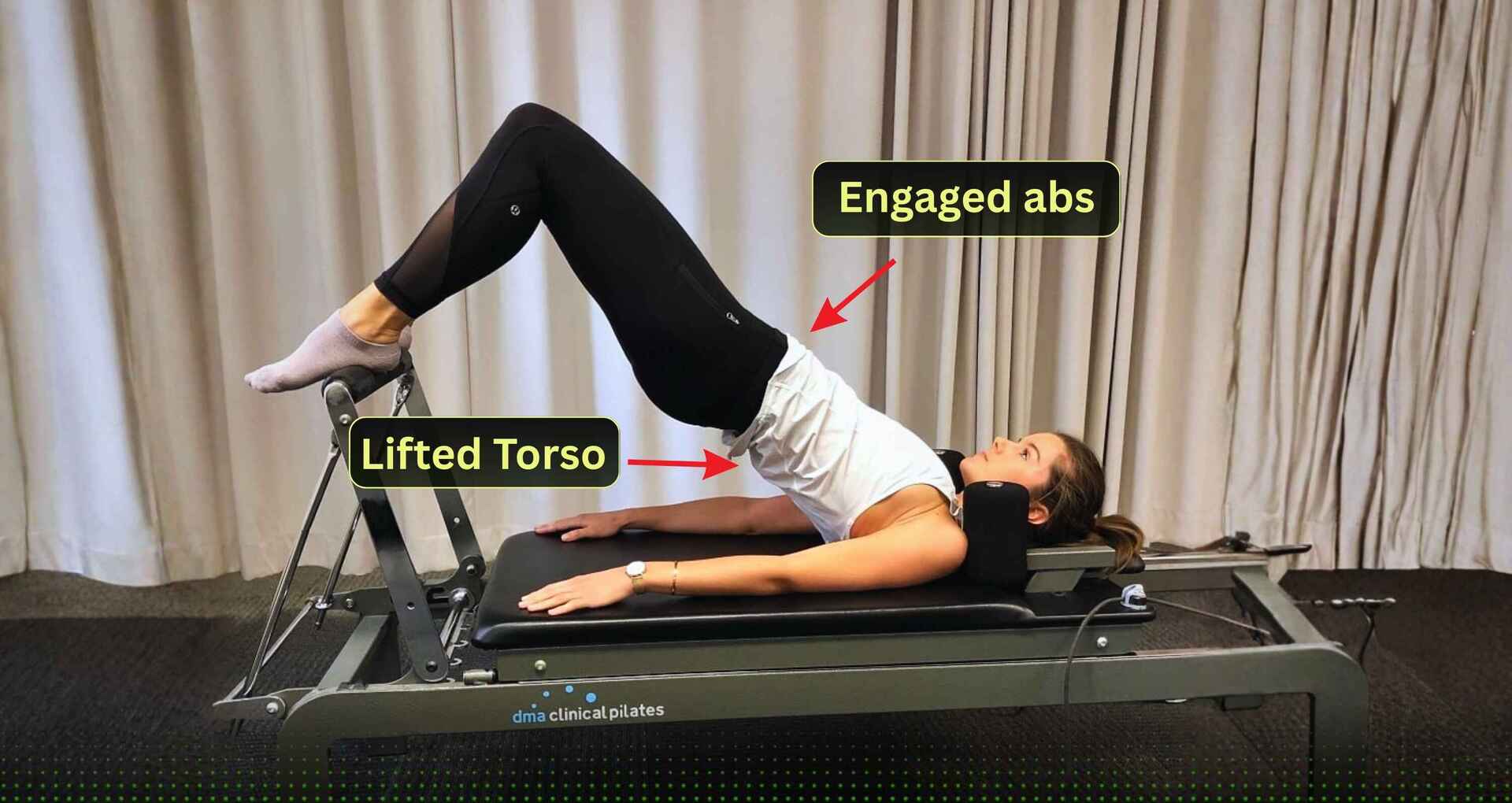 Lie down in a neutral pelvis position, and keep your feet hip-distance apart.