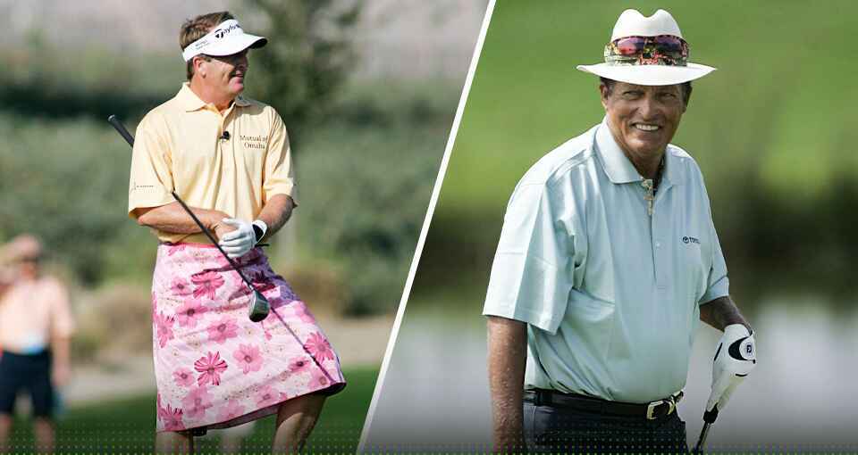 Lost: Annika Sorenstam outdrove Fred Funk at the 2005 Skins Game. Honoring their fun wager, Funk donned the pink flowered skirt that Sorenstam ‘gifted’ him. Of course, Funk struggled to squat while reading his putt. And of course, Tiger threw a sassy ‘two-balls’ joke at him. Let us present you with the most hilarious moment in the history of the Skins game.