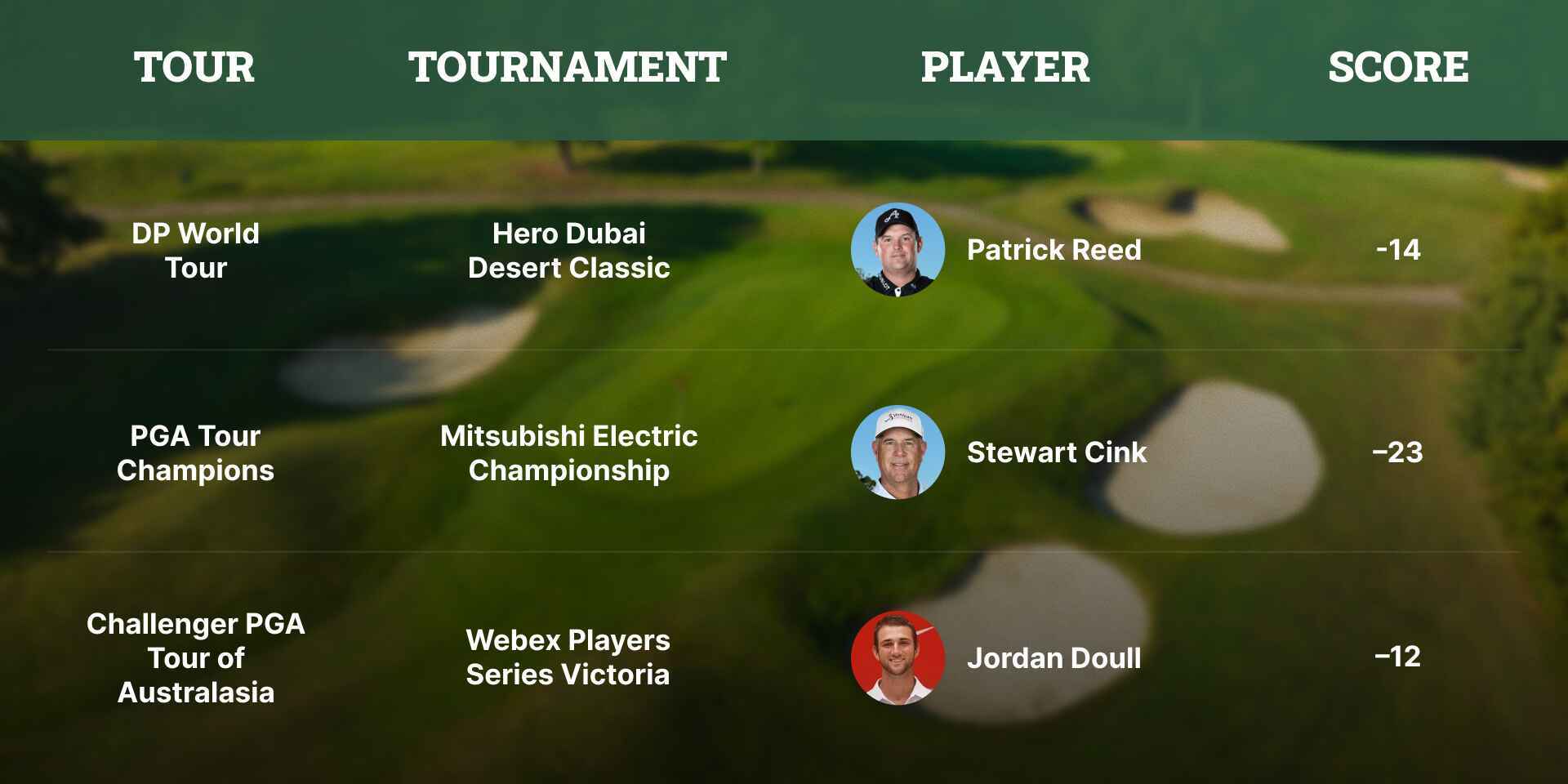 Challenger PGA Tour of Australasia: At the Webex Players Series Victoria, Jordan Doull (E) led by two over Cam John (2-under). But a double-bogey blunder on the 71st hole turned the tables. On the other hand, John, last week’s Vic Open champion, missed the tournament-winning putt on the 72nd hole by inches — watch how close he came to netting back-to-back titles. That forced a playoff. They parred the first three holes, but on the 76th, Doull drained an eight-footer for birdie while John managed only a par. Elsewhere, Lachie Wood took the All Abilities title at 1-under 139, and Elbert Kim won Juniors at even-par 140.